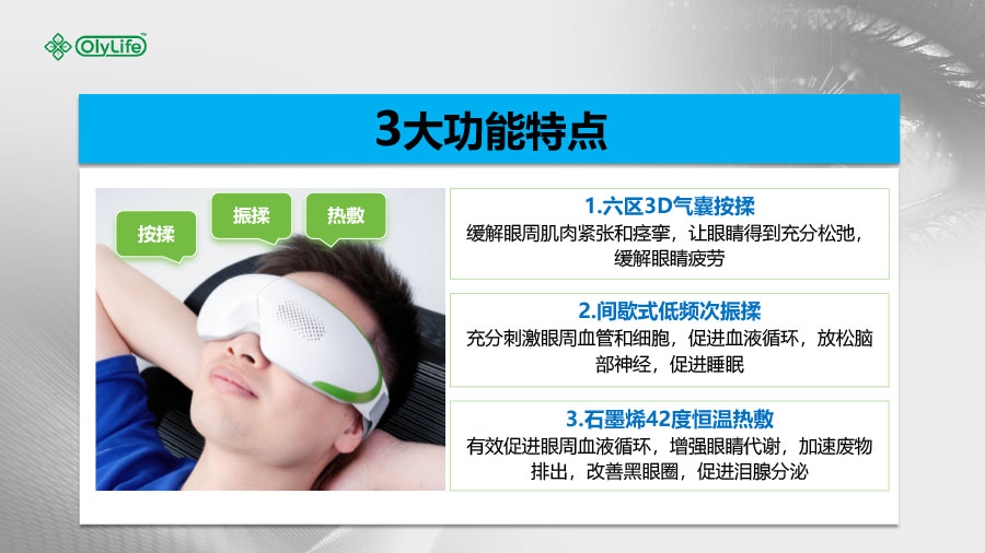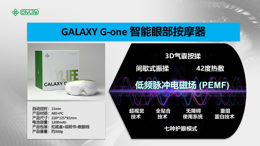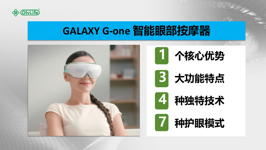 G-One 護眼儀,結合熱敷與按楺功能,戴上後能享受舒適護眼體驗,同時透過可視窗口,讓您護眼工作兩不誤。